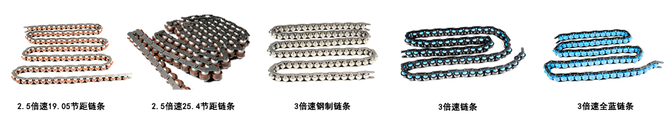鏈條也叫滾子鏈?zhǔn)且环N用于傳送機(jī)械動(dòng)力倍速鏈條,廣泛應(yīng)用與家庭、工業(yè)和農(nóng)業(yè)機(jī)械,其中包括輸送機(jī)、繪圖機(jī)、印刷機(jī)、汽車、摩托車、以及自行車。它由一系列短圓柱滾子鏈接在一起,由一個(gè)稱為鏈輪的齒輪驅(qū)動(dòng)。這是一個(gè)簡單,可靠,高效的動(dòng)力傳遞裝置。
