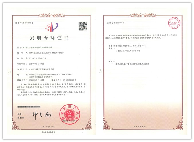隨著科技進(jìn)步與技術(shù)創(chuàng)新不斷發(fā)展,自主知識(shí)產(chǎn)權(quán)儲(chǔ)備,尤其是創(chuàng)造性較高的發(fā)明專利已成為企業(yè)發(fā)展的核心競(jìng)爭(zhēng)力。近日,廣東匯興精工智造股份有限公司(股票代碼:839258)又新增一項(xiàng)發(fā)明專利——《一種陶瓷馬桶自動(dòng)存胚輸送線》。