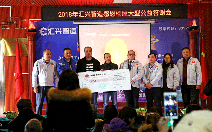 一直以來,匯興智造堅(jiān)守著“孝道(孝敬父母)、商道(感恩客戶)、人道(欣賞他人)”的核心價(jià)值理念,先后多次組織大嶺山敬老院敬老、楊屋村敬老感恩,暑期愛幼培訓(xùn),興國縣助學(xué)、企業(yè)內(nèi)部精準(zhǔn)扶貧、大嶺山武警基地八一擁軍、干部團(tuán)隊(duì)獻(xiàn)血,志愿者路面服務(wù)等各種愛心公益活動(dòng)。向善、為善、揚(yáng)善的匯興人用實(shí)實(shí)在在的行動(dòng)和堅(jiān)持詮釋了“樂善好施、大愛無求”的道德情操與“快樂工作、幸福生活”的職場文化。