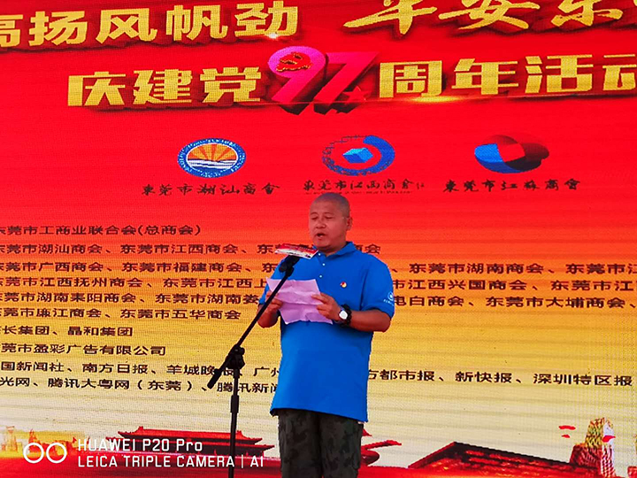 2018年6月30日上午,以“黨旗高揚風帆勁 平安東莞譜華章”為主題的慶祝建黨97周年活動在黃旗公園舉行,本次活動由市工商聯(lián)(總商會)指導,東莞市潮汕商會、東莞市江西商會、東莞市江蘇商會發(fā)起聯(lián)合在莞25家商協(xié)會共同主辦。東莞市工商聯(lián)(總商會)副主席張軍民、副調(diào)研員宋志鋒等領導及近1000名商協(xié)會黨員出席活動。