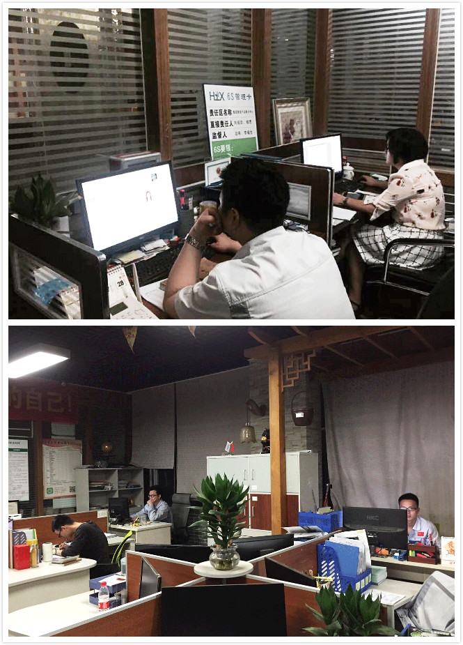 因訂單暴增,人手不足,辦公室人員在下班時(shí)間主動(dòng)到物控部幫工,不抱怨,不放棄。匯興智造董事長(zhǎng)鐘輝:“看著他們勤勞而又高大的身影,我感動(dòng)太多!”