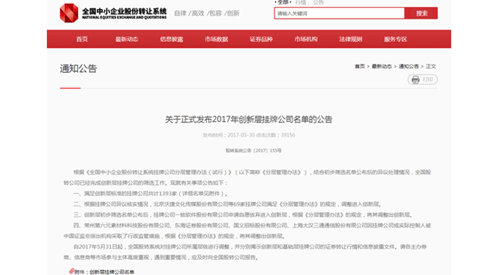 新三板實(shí)施分層管理一度引發(fā)市場(chǎng)熱議。在分層實(shí)施一年之后,新三板迎來(lái)分層之后的首次調(diào)整。截至5月30日,新三板總共掛牌企業(yè)11244家,結(jié)合篩選后的異議處理情況,全國(guó)股轉(zhuǎn)系統(tǒng)正式發(fā)布2017年創(chuàng)新層掛牌公司名單,共有1393家公司滿(mǎn)足創(chuàng)新層標(biāo)準(zhǔn),入圍創(chuàng)新層掛牌公司行列。新三板創(chuàng)新層旨在分別從盈利能力、成長(zhǎng)性和市值水平等三個(gè)維度甄選更優(yōu)質(zhì)的掛牌公司,創(chuàng)新層掛牌公司數(shù)量?jī)H為掛牌公司總量12%。