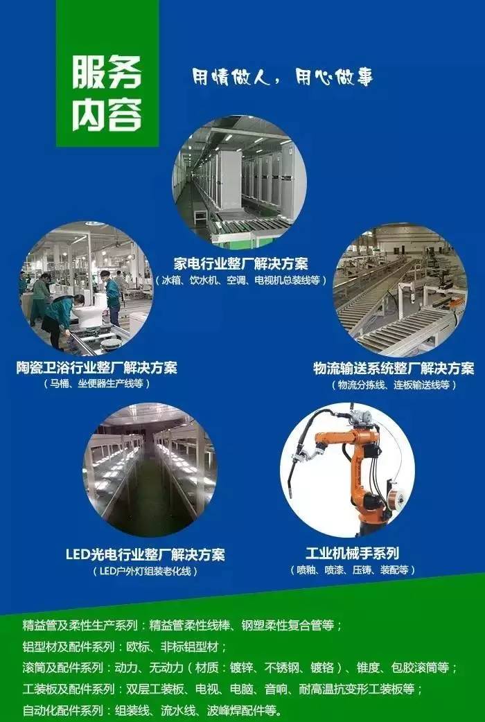 廣東匯興精工智造股份有限公司作為國(guó)家高新技術(shù)企業(yè),正逐步成為全球領(lǐng)先的整廠自動(dòng)化系統(tǒng)解決方案提供商,匯興智造為家用電器、衛(wèi)浴陶瓷、新能源、LED、汽車零部件、家具廚具、物流輸送、精密電子電器、醫(yī)藥食品、包裝印刷等細(xì)分領(lǐng)域提供整廠自動(dòng)化系統(tǒng)解決方案及精密工業(yè)自動(dòng)化配件一站式采購(gòu)服務(wù)。其中,家電生產(chǎn)線是匯興智造的王牌產(chǎn)品,主要為:電冰箱、微波爐、空調(diào)、液晶電視機(jī)、熱水器、烤箱等制造企業(yè)提供智能自動(dòng)化生產(chǎn)方案。