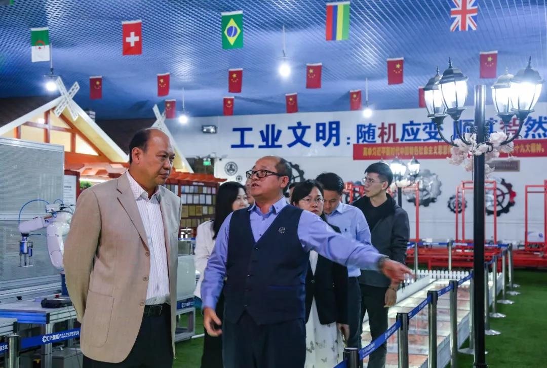 楊曉棠常委一行參觀智能制造工業(yè)4.0體驗館、黨建陣地、社會主義核心價值觀宣傳長廊、中德智能裝備研究院等。董事長鐘輝介紹了公司發(fā)展概況,并匯報了公司增資擴產(chǎn)、項目用地進展等企業(yè)運營情況。