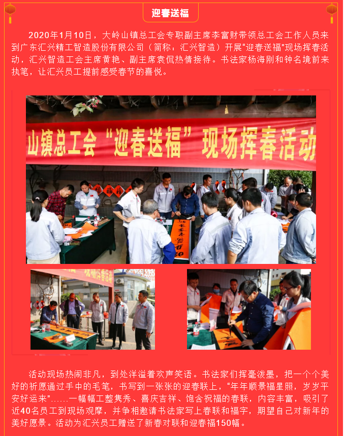 翰墨飄香送春聯(lián),文化進企暖人心——鎮(zhèn)總工會來匯興開展“迎春送?!爆F(xiàn)場揮春活動