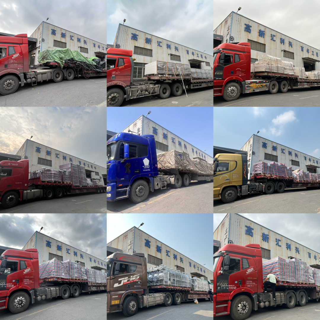 匯興智造總部工廠迎來春季出貨的高峰期!廠區(qū)內(nèi),一輛輛大貨車排起長龍,各種叉車、搬運(yùn)來回穿梭,一派熱鬧繁忙的景象。