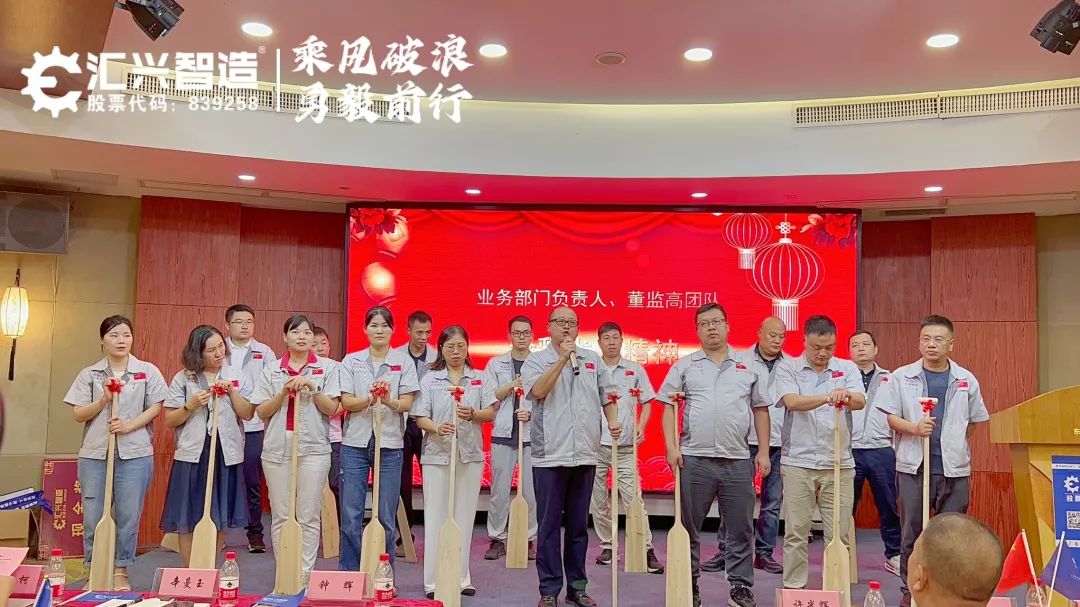 參會現(xiàn)場董監(jiān)高上臺在沒有任何彩排的情況下,進(jìn)行劃龍舟展示,在鐘董的指揮下,整齊劃一的劃動船槳。意在把團(tuán)結(jié)拼搏、奮勇向前的龍舟精神轉(zhuǎn)化為推動匯興智造高質(zhì)量發(fā)展的動力,激勵大家在干事創(chuàng)業(yè)的賽道上,拼出精彩,拼出未來。